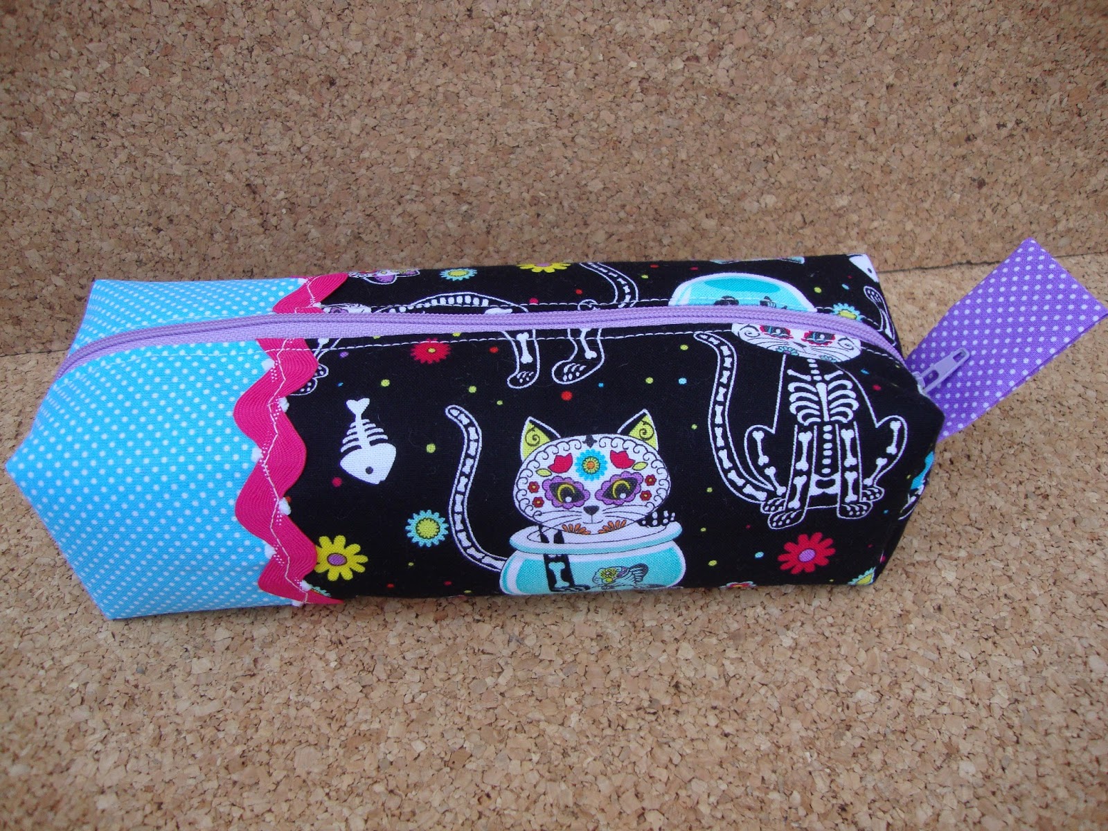 Eu que não sou muito dada a caveiras não resisti a comprar este tecido com gatos caveiras :p